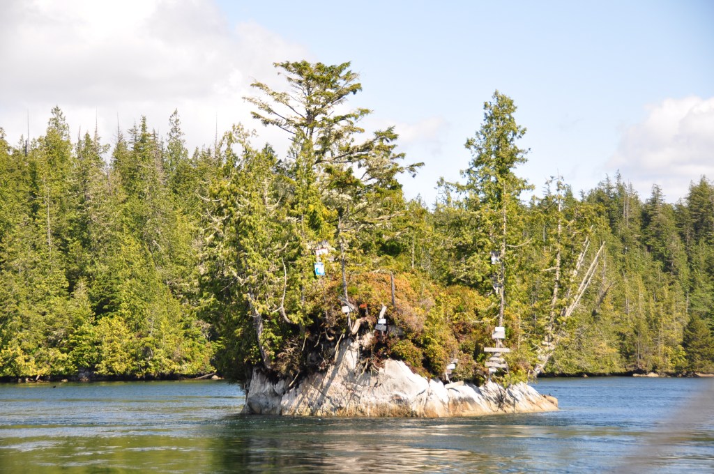 Things started off well. Left the dock and motored out and towards The Walker group of Islands. As we started going though Shelter Passage and the western portion of Queen Charlotte Straight the seas started to get a little sloppy – confused seas. Lilly started to look a little piqued and licking her mouth indicating she’s thinking she is going to barf. The seas are getting more and more sloppy and confused and she runs down to the carpet in front of the state rooms to barf. I go clean it up. Usually she’s better after that.