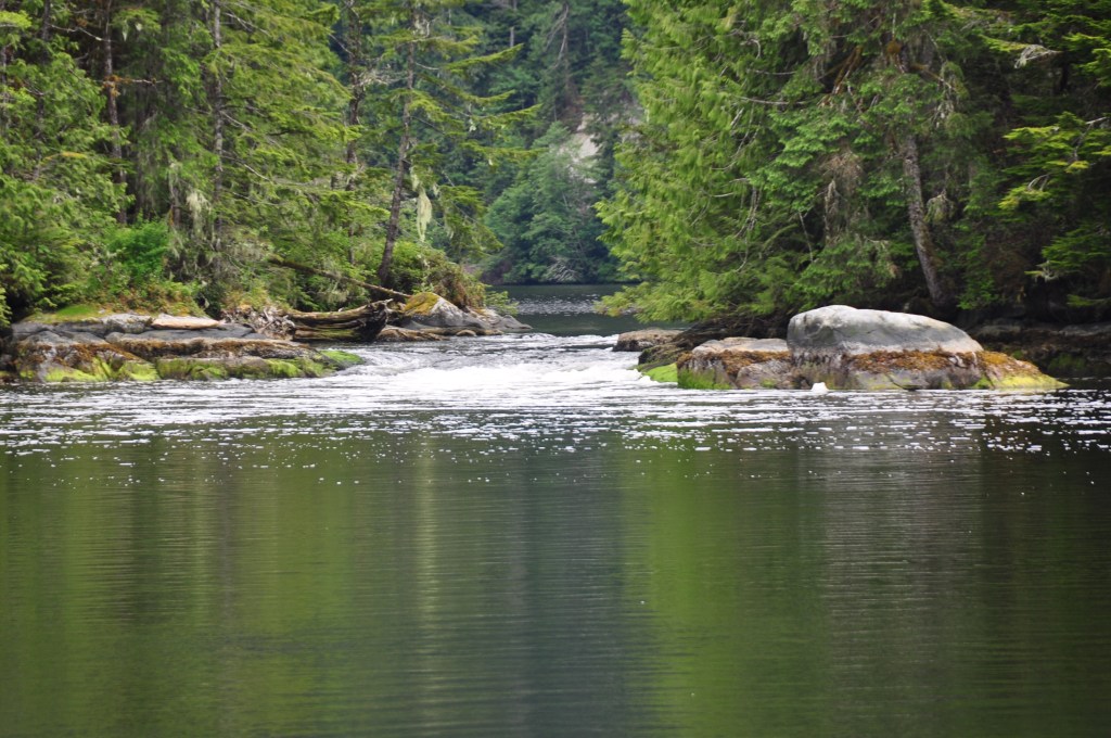 I thought that was a good photo of the water coming out of Schwartzenberg Lagoon. The lagoon can be seen in the back with the water rushing out through the small opening. It is very shallow and access to the lagoon is by skiff only at high water slack. It is quite a large lagoon. I wonder what is the ration of fresh water to sea water in theses inlets.