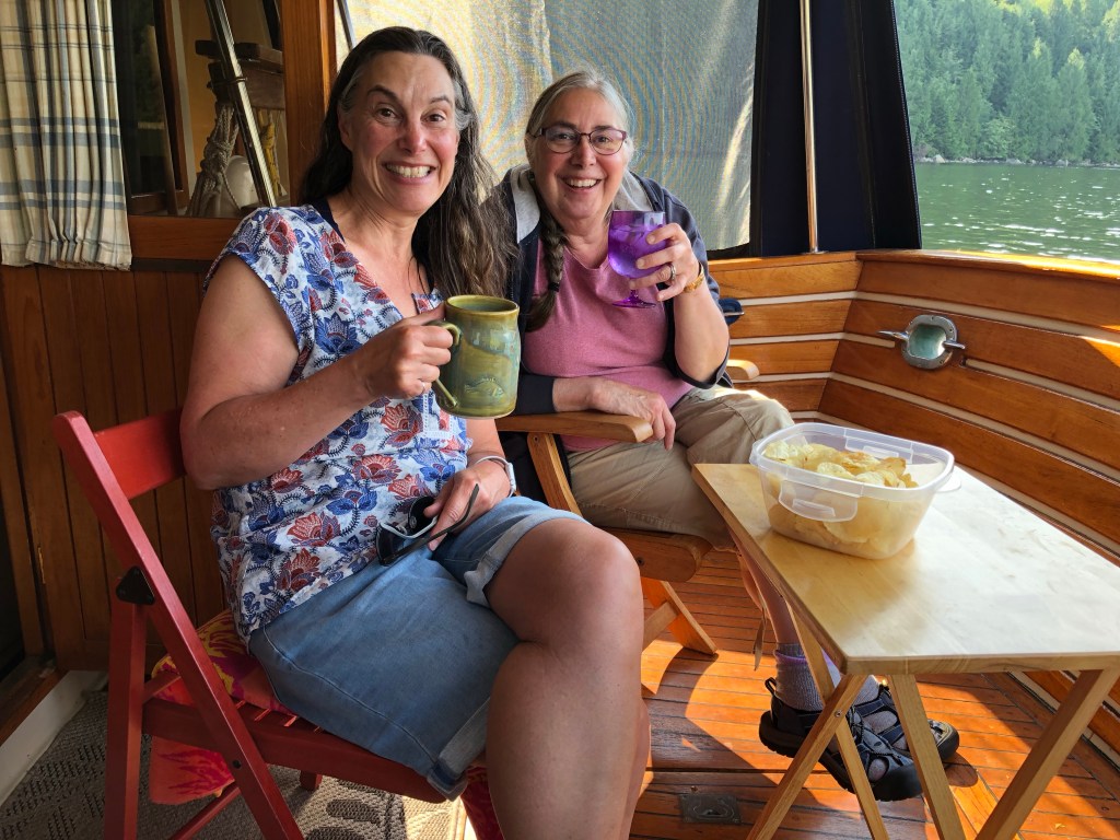 Shoal Bay has a little outdoor pub operating this year. But not the night we were there! We were looking forward to a pub night. Happy hour in the cockpit instead. Beautiful weather and a beautiful view
