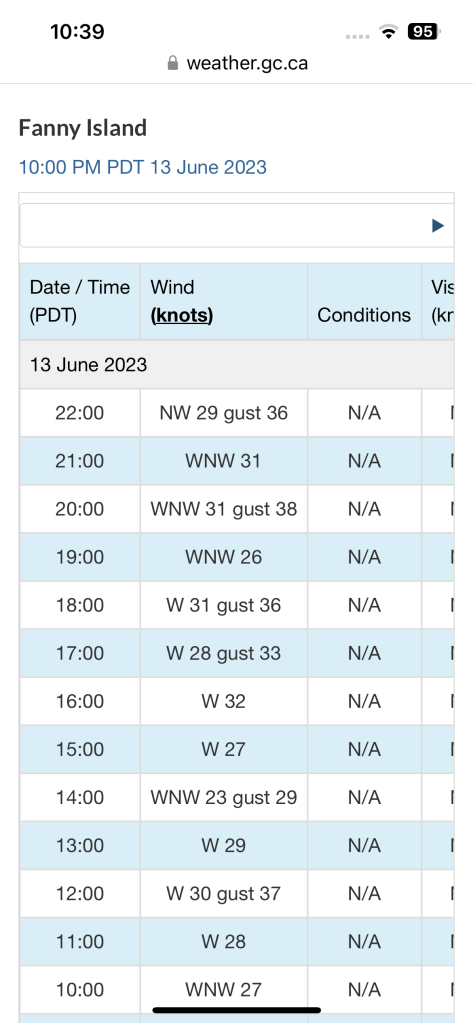 We are at the dock in Shoal Bay. There has been a gale warning in Johnstone Strait for the past 3 days.