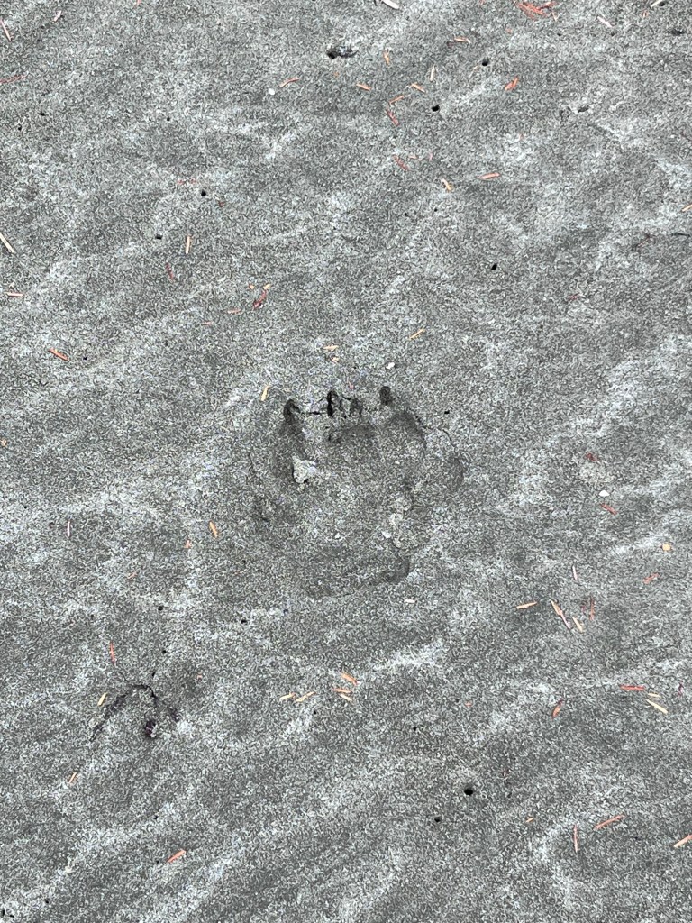 Jim went back to where we left the skiff as it was a rising tide and there was a lot of surf action. Sharon and I walked on a bit longer. We saw some prints in the sand that looks like they were from a wolf