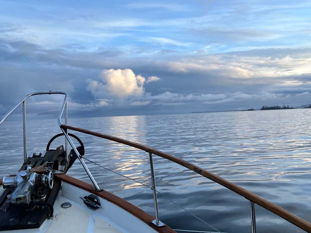 We left Clam Cove at 4:56 AM. The West Sea Otter weather bouy is out of service so we did not have a clear idea of the wind or wave height. Something that Environment Canada needs to get fixed !