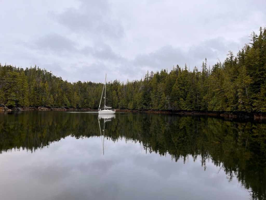 The next anchorage was an unnamed spot that Jim was told about from William Kelly one of the authors of a book called “ Anchorage’s of the Inside Passage” by Anne Vipond. It was a very pretty little spot.