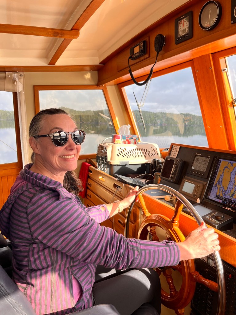 When she came back to Phoenix Hunter she had a little difficulty getting from the sitting position of the kayak to the swim step of the big boat. Usually she was in a standing position. And she fell in the water. That was exciting! She easily got back on the paddle board and climbed on the swim step. But was pretty wet – and a wet phone ! All was well in the end and the phone seemed to survive. Thank goodness the phone survived !