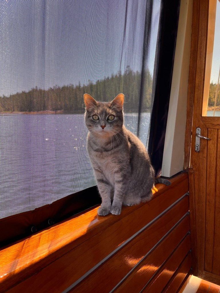 Lily’s picture at the anchor reminds me of the book “ A guide to England through a Cat’s eye” by Pat Albeck. As you know, I am a dog person, but I like this book very much as Kitty in the book is very opinionated and clever and wrote the story so beautifully. I wonder whether Lily should write a book about boating with her humans each summer. After all, she has been navigating that part of the water more than most people I know.