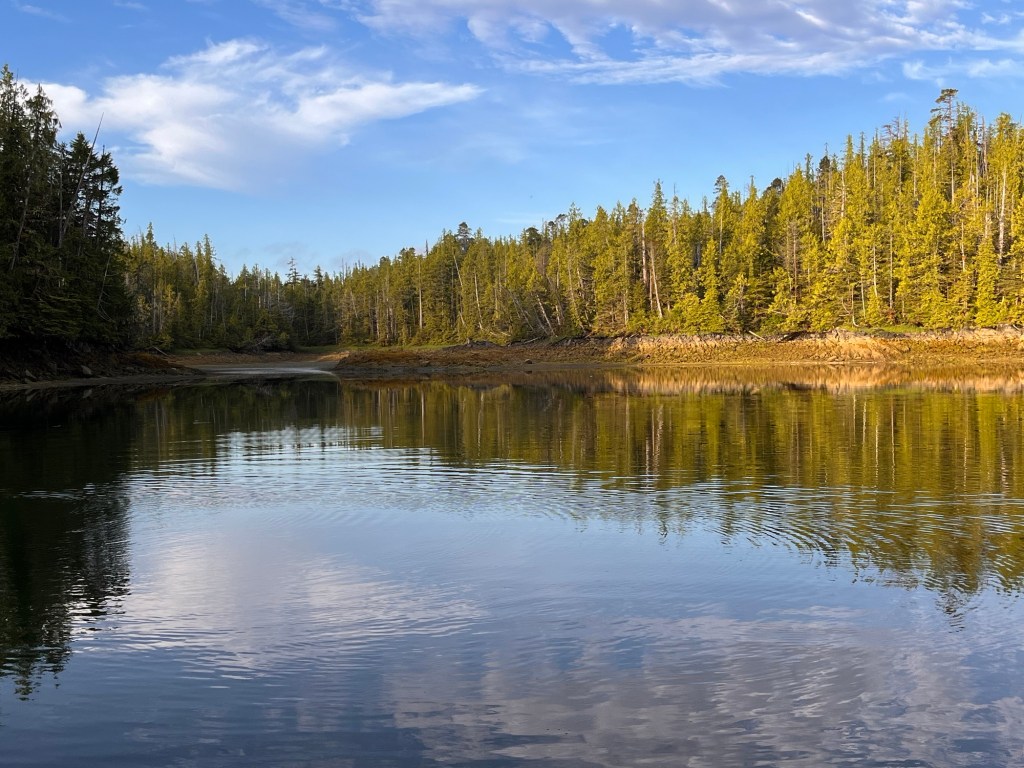 We were planning to stay two nights in Clothes Bay and go back to Klemtu the next day. Although we were not entirely sure how we were going to do that with the skiff not working. Possibly paddle the skiff to Klemtu- it was only about a miles.