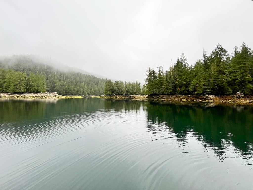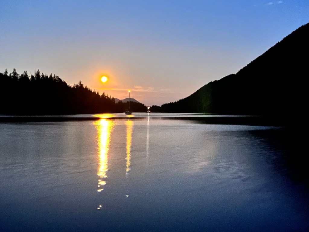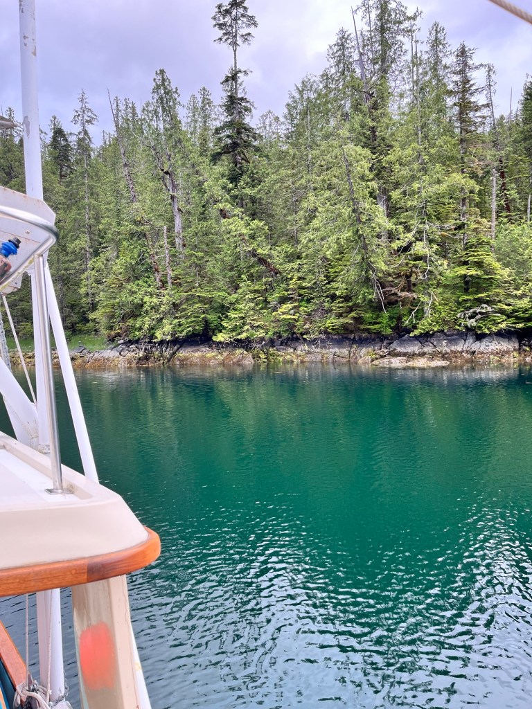 We stayed at a lovely little anchorage in Meyers Passage between Chappell Inlet and Klemtu. Just off to the side of the narrow part of Myers Passage.