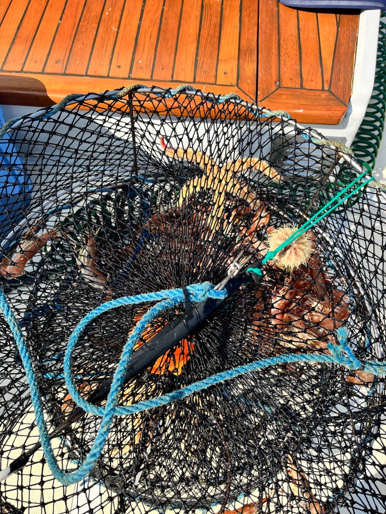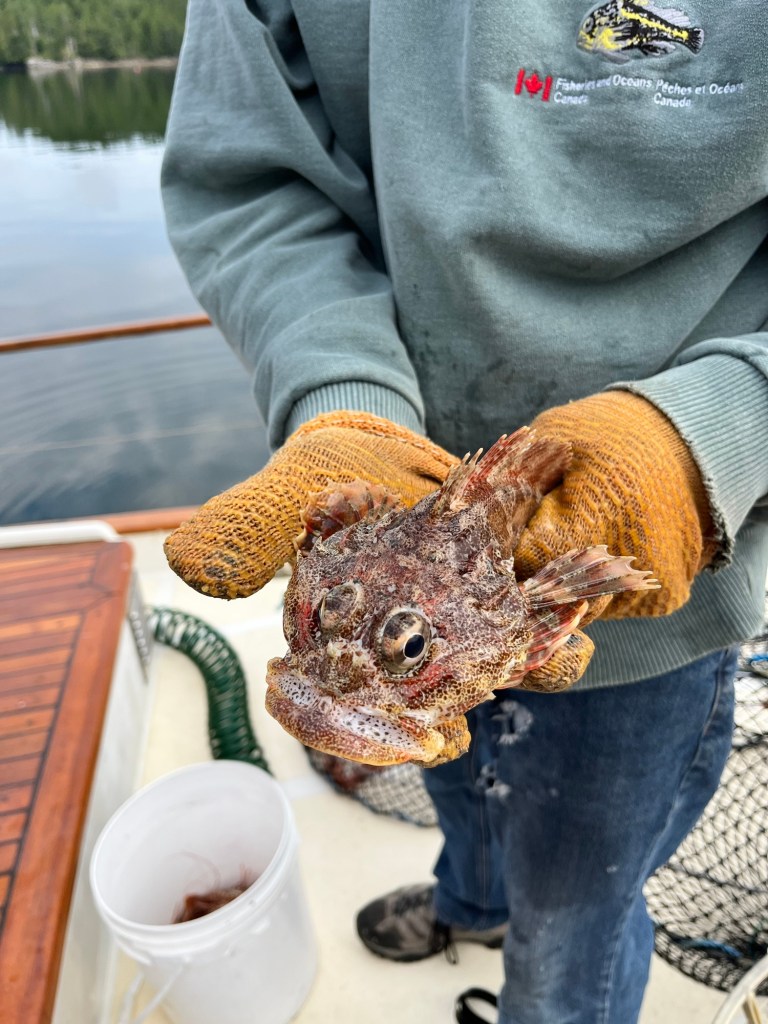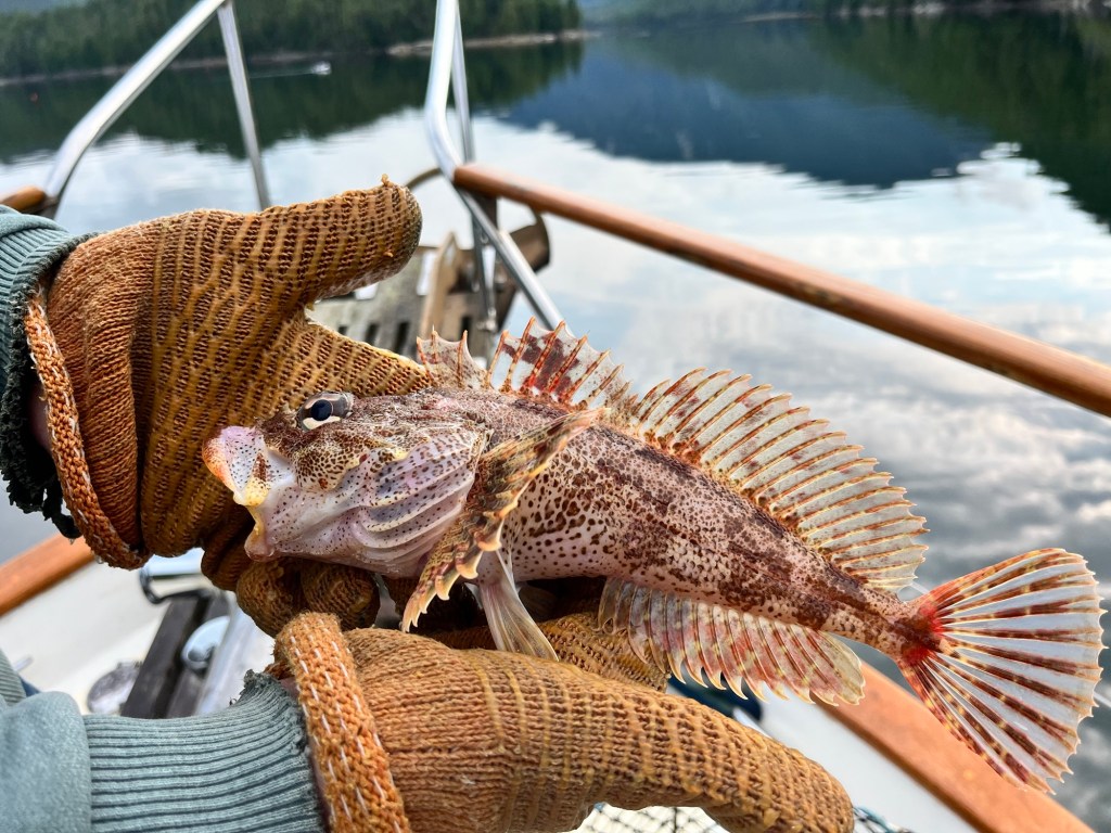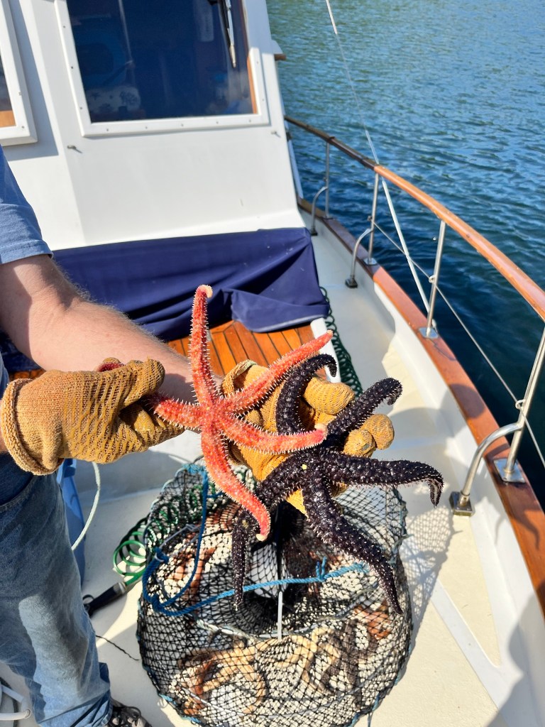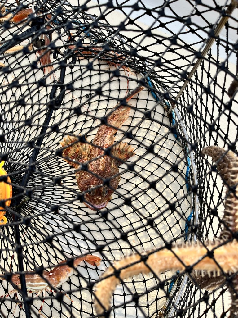 And the next morning we pulled the pots again and along with a couple of starfish we also caught a couple of Red Irish Lord Rockfish ( so says Jim )
