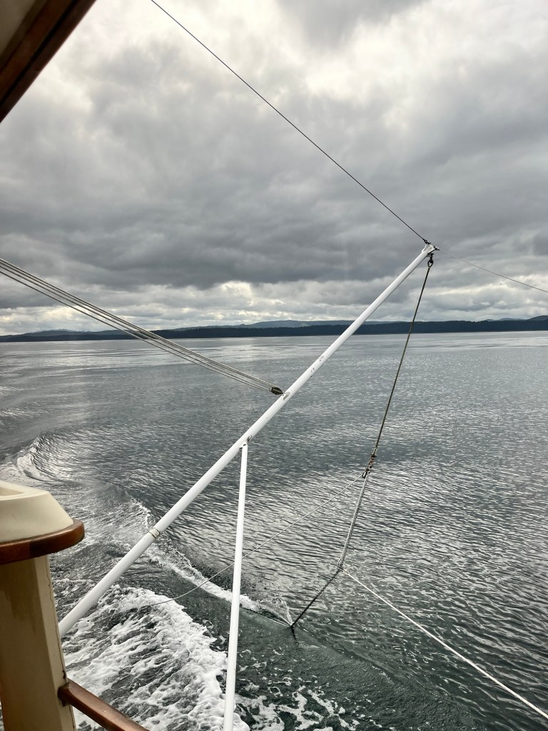 It was a long day. We were at times beating a big tide and traveling less than 4 knots. We didn’t get into Winter Harbour until 5:30 pm.