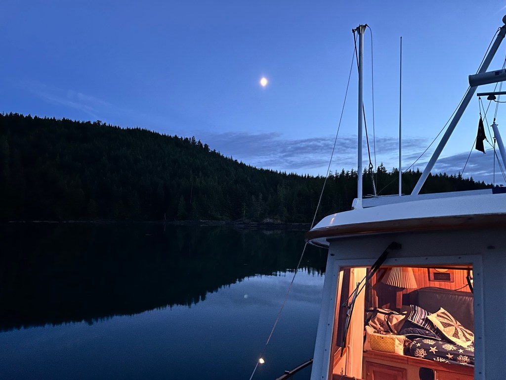 We will stay here for a few days. I’ve put out the hummingbird feeder. We saw two hummingbirds yesterday after we set the anchor.