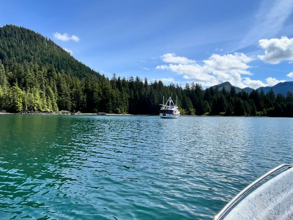 We went out for a couple of good long skiff rides. Yesterday there was a boat called Aquila Bay anchored up in one bay over – Scow Bay.