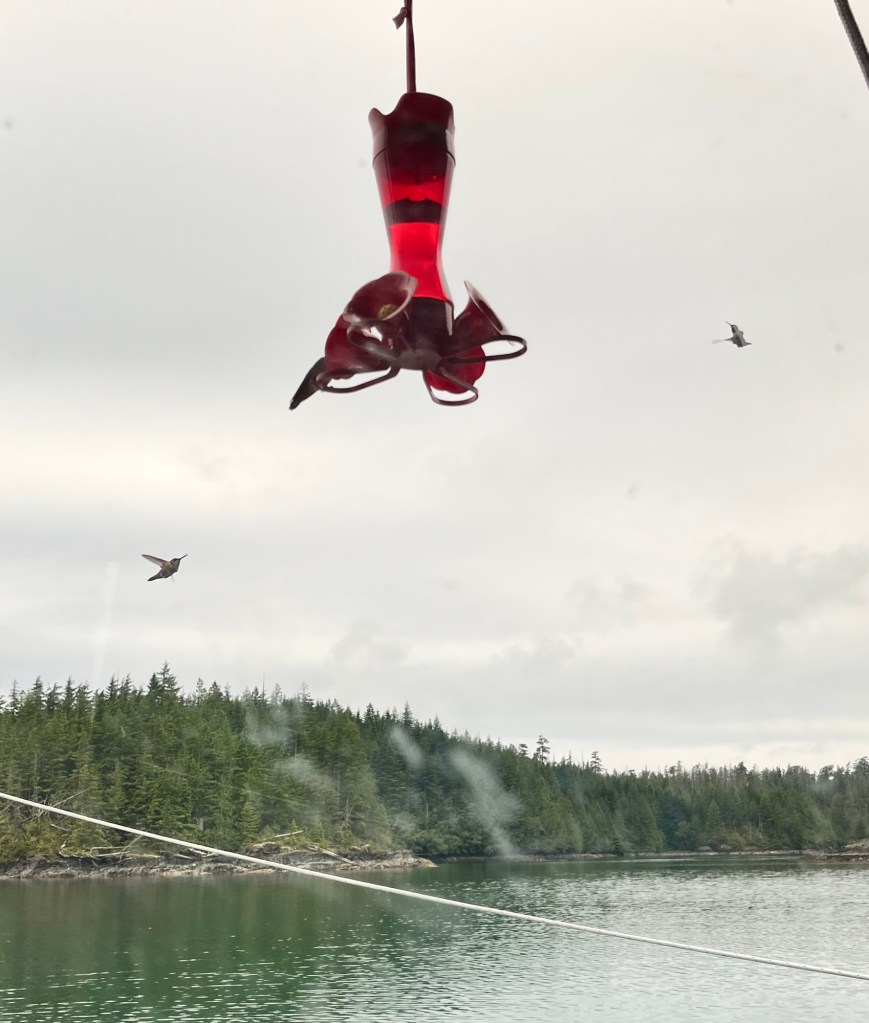 I read that apparently when the feeder is gone they will go back to foraging for food as they did before the feeder. They eat insects and nectar and sap in the wild. I imagine there are a lot of insects here. Definitely mosquitoes! I was feeling a bit guilty that we would be taking the feeder away tomorrow.