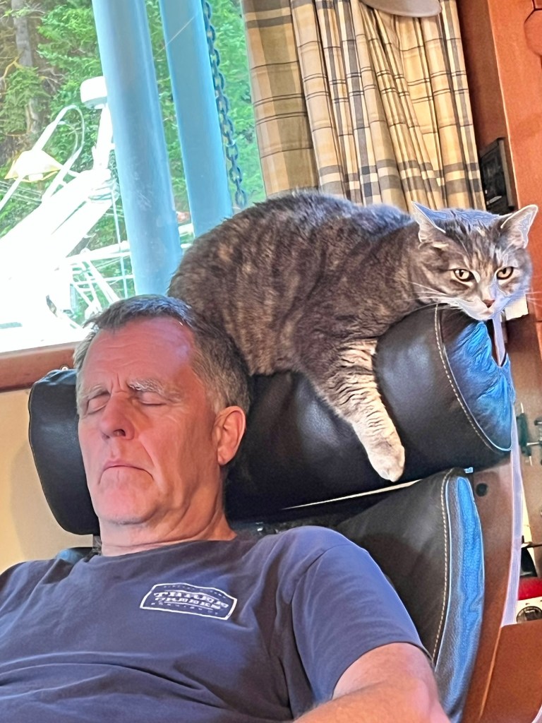 It has been quite windy in the afternoons here in Zeballos as well. There were a couple of sailboats at the dock that arrived the same day we arrived. But sailboaters like that wild wind and waves and don’t have a cat that barfs!